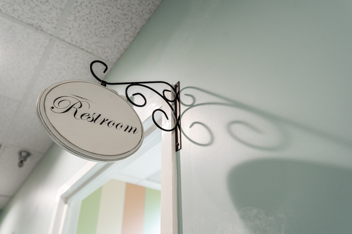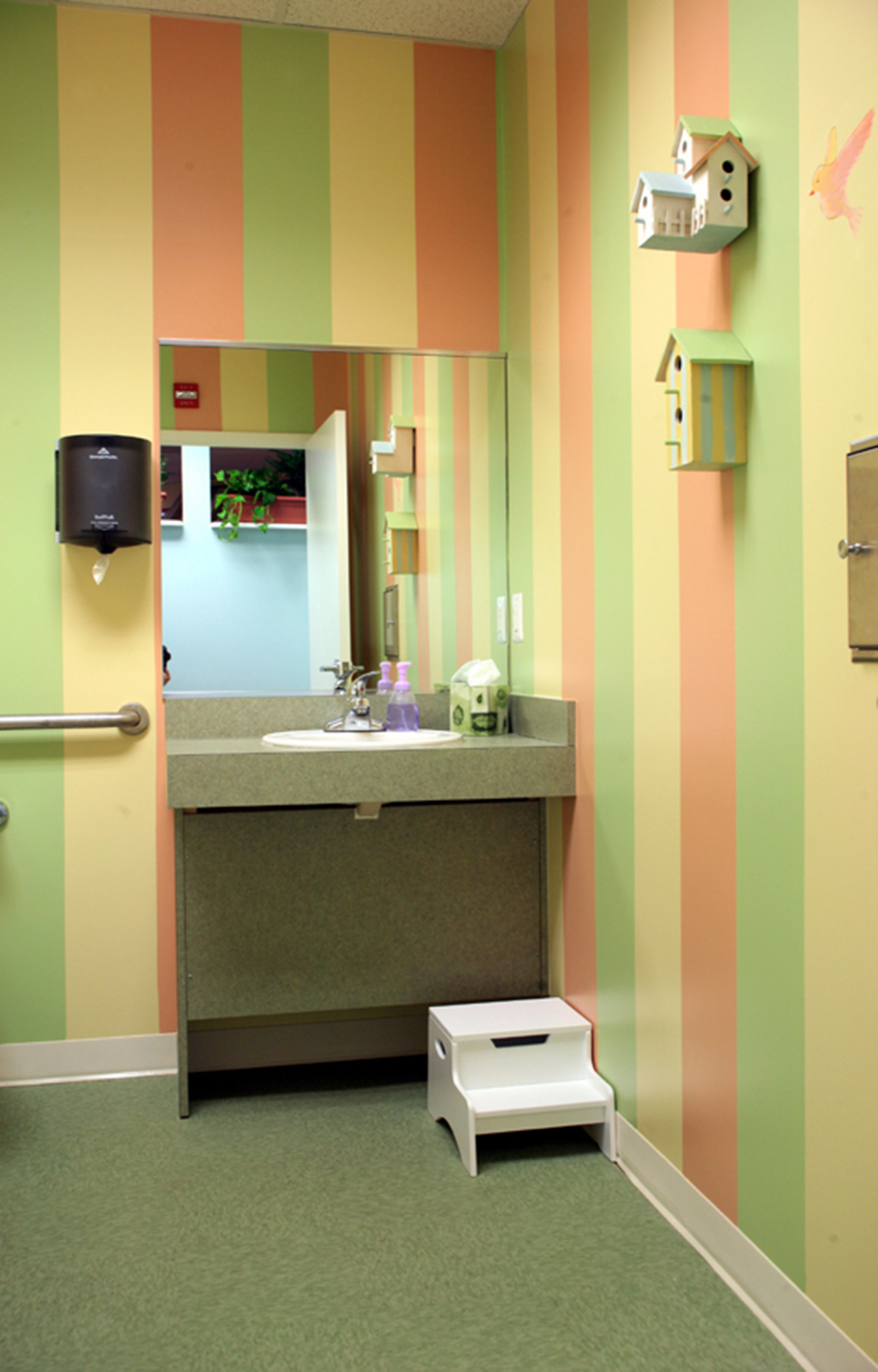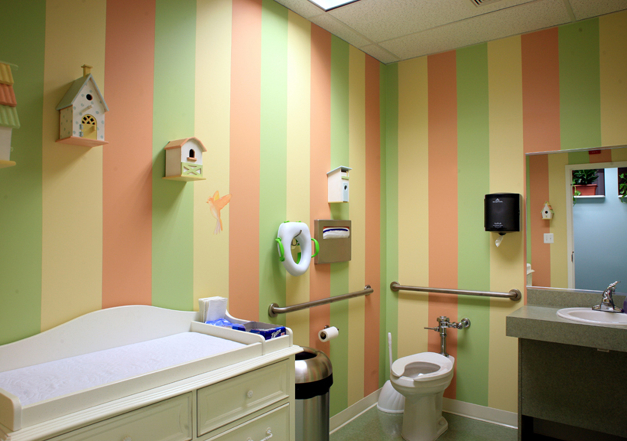 Our spacious family bathroom is designed to offer every comfort of home, including a potty seat, step stool, and quaint changing table which contains diapers of every size.