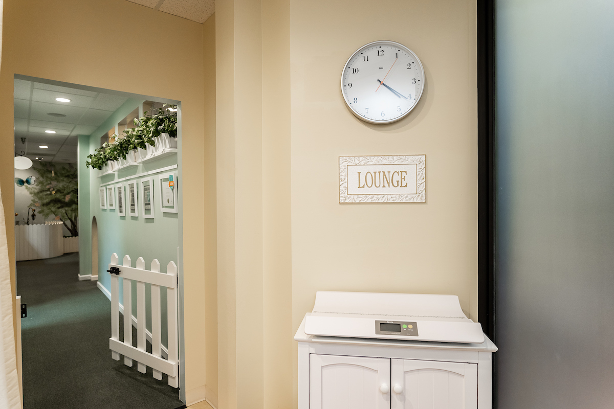The Lounge was specially designed to provide a quiet and relaxing space for appointments with our lactation consultant. Unlike typical exam rooms, The Lounge is outfitted with a custom carpet, oversized curtains, cozy sofa, and chairs.